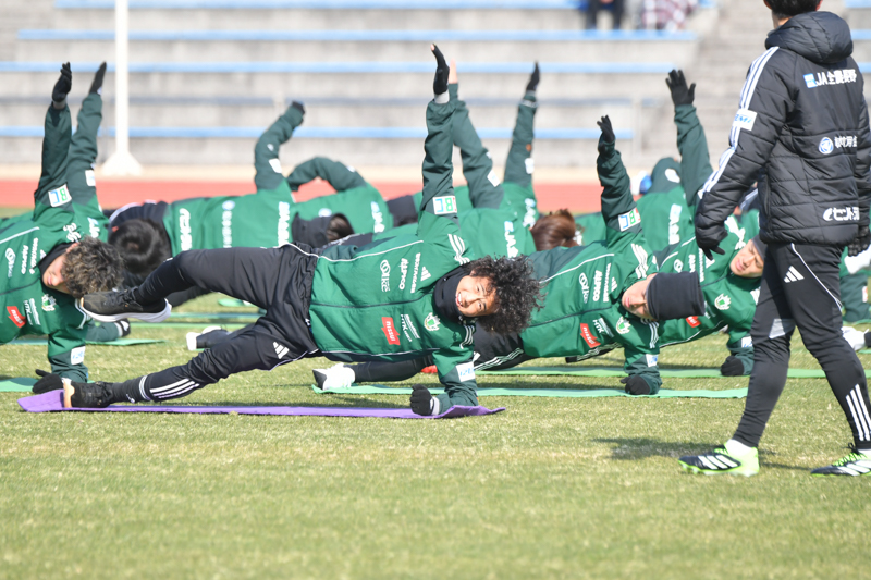 鹿児島キャンプ第6日は1日、鹿児島県立鴨池補助競技場で午前練習を行った。まずは1時間弱のミーティングを行い、前日のトレーニングマッチのフィードバック。全体練習はストレッチ、体幹トレーニング、ジョギングなどリカバリーをメインとした。翌2日はオフで、痛めつけた身体を回復に充てる。